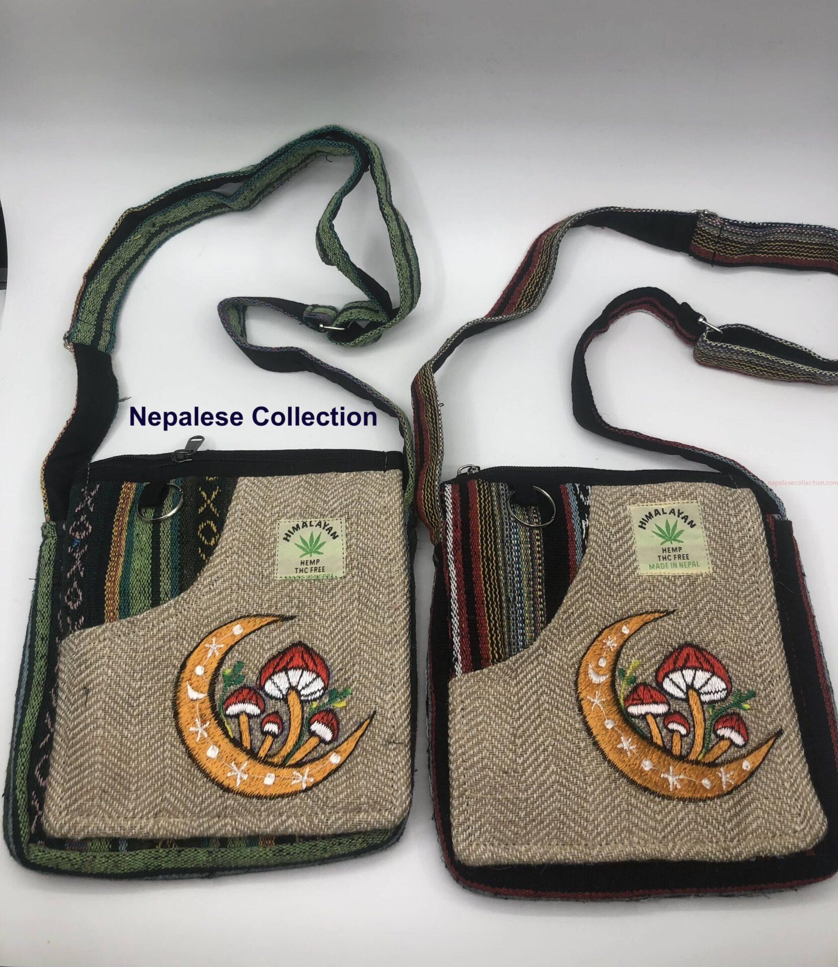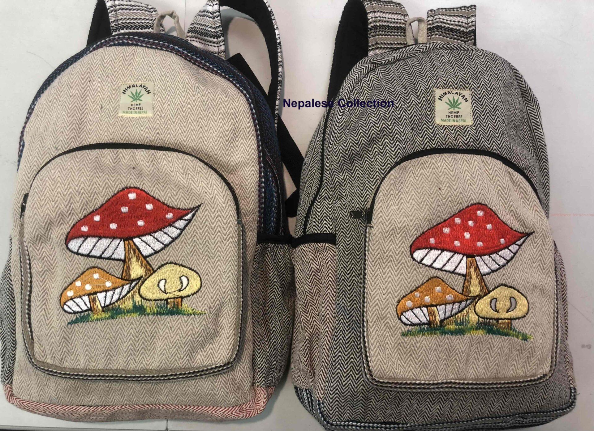 Hemp Cotton Mini size Bag Pack with mushroom design embroidery.