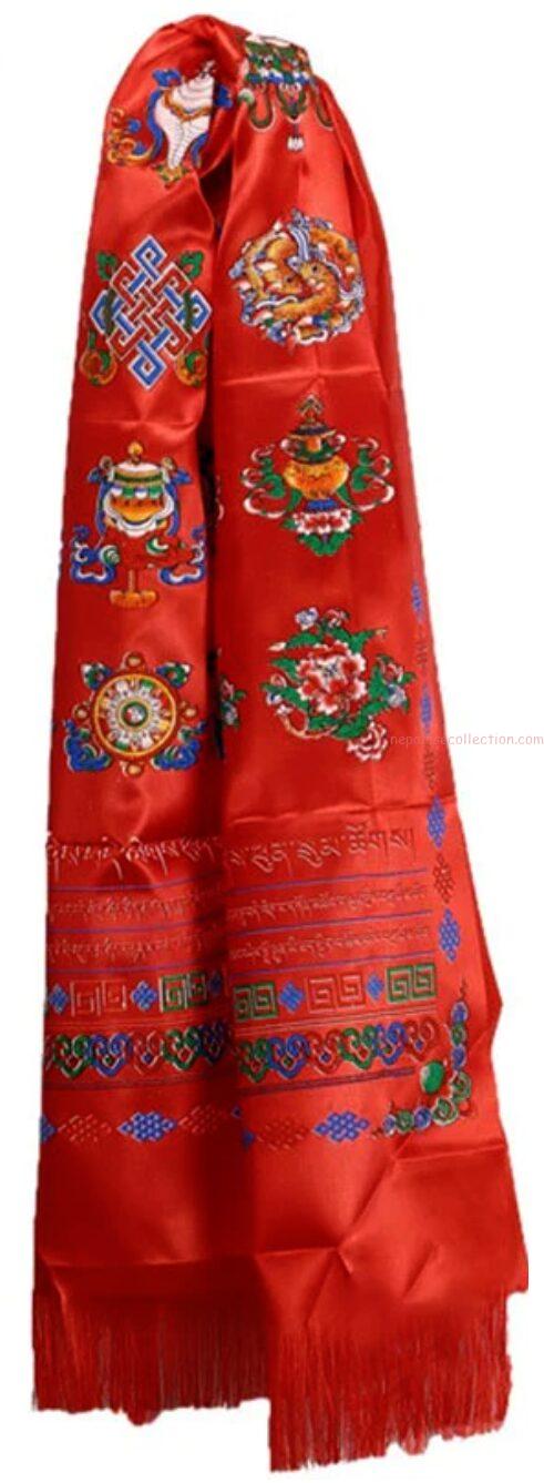 Khata is a kind of Tibetan Scarf. Also it’s called the Khada. It is a traditional ceremonial scarf with a Mantra printed. It is widely used by the Tibetan, Nepali, Hindustan, Gorkha, Bhutanese, and Lepcha people on various occasions. It originated in Tibetan culture and is common in cultures and countries where Tibetan Buddhism is practiced or has a strong influence. The practice of using khatas has influenced people of other communities too who are in close relation to these communities. It is predominantly used in Tibet, Bhutan, Nepal, and India other parts of the world. It is a symbol of honor and respect. It is used in Tibetan religious ceremonies, ceremonial and traditional dances, etc., It is offered in monasteries and temples. Specialty it’s holds religious and cultural significance.