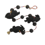 Handmade felt decorative hanging with colorful wool beads and small felt animal figures. A playful artisan décor piece, approx. 41 inches long.