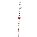 Small felt animals, shaped like dogs or lambs, appear along the strands. They wear red felt scarves that add a playful and festive touch. Dark threads hold the beads together, and a metal clasp completesor eco-friendly Christmas