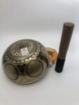 Traditionally, Tibetan singing bowls are handcrafted from a unique alloy of seven sacred metals: gold, silver, copper, brass, iron, tin, and lead. Some also include mercury. Each metal produces a distinct frequency, and together they create the bowl’s rich, resonant tone. The exact metal ratios vary between bowls, giving each one a unique sound signature.